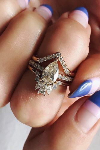 Classic Pear Shaped Diamond Engagement Ring With Diamond Wedding